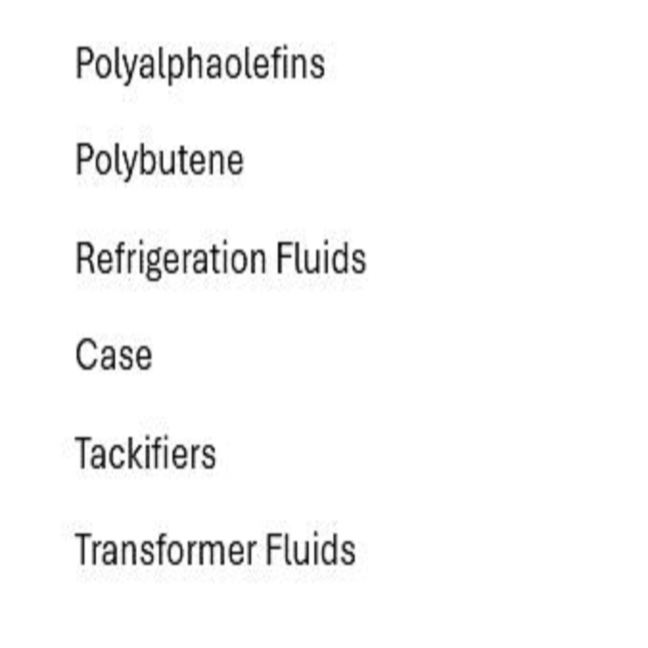 Performance Additives, Polyalphaolefins, Polybutene Refrigeration Fluids, Case Tackifiers, Transformer Fluids